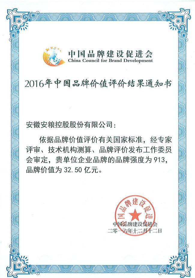 2016年中國品牌價值評價結果