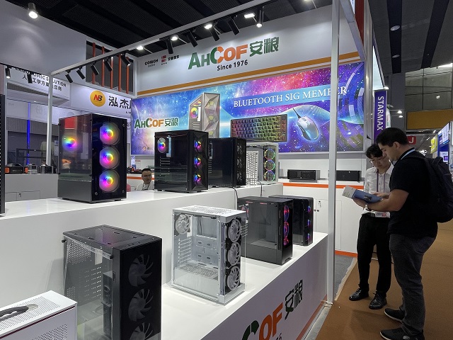 南方一部在本屆廣交會(huì)一期主要參展游戲電腦機(jī)箱產(chǎn)品,從入門級(jí)到高端游戲機(jī)箱齊全。部門在營(yíng)銷展示上采用一系列新穎的形式,展臺(tái)的主通道采用目前比較流行的魚缸游戲機(jī)箱作為看點(diǎn),用可藍(lán)牙連接手機(jī)和電腦的高端游戲機(jī)箱吸引客戶。為了突出參展效果,所有游戲機(jī)箱都裝上了RGB變色風(fēng)扇。多樣化的變色風(fēng)扇與南方二部的機(jī)械鍵盤吸引了大量客戶駐足觀看。消費(fèi)電子展6個(gè)攤位,突出游戲類產(chǎn)品的裝修風(fēng)格,搭配大氣的門頭、顯眼的海報(bào)燈箱,使客戶在進(jìn)館時(shí)只需一眼就能夠鎖定目光。